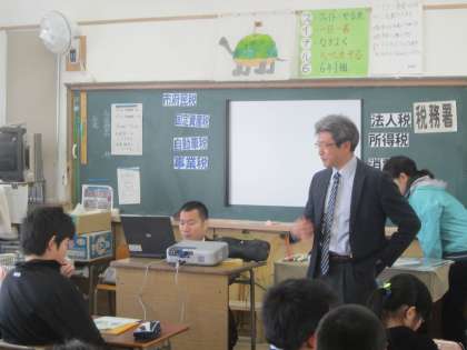 社会科学習の一環として、地元・住吉税務署の「租税教室」出前授業を行いました。