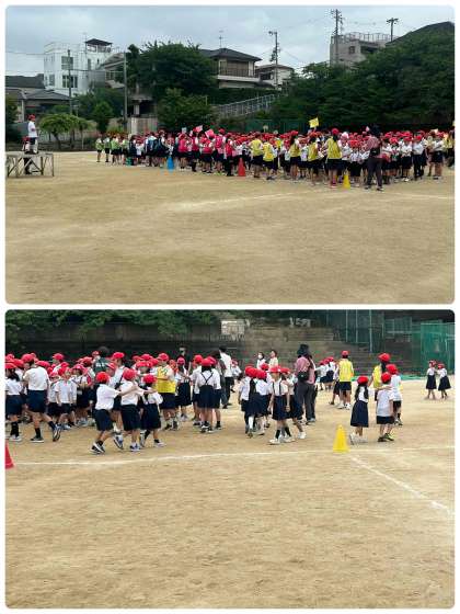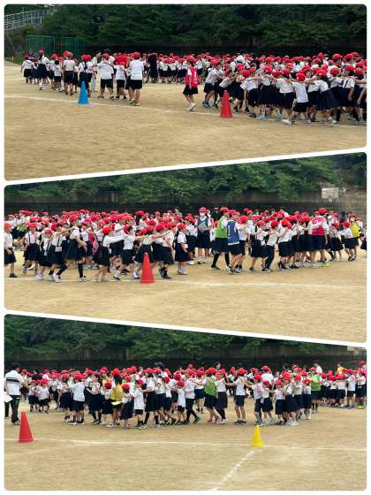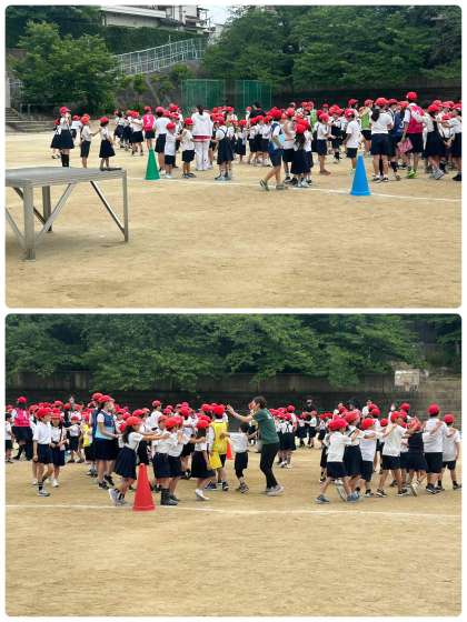 先週から始まったたてわり班による集会。今日は運動場でじゃんけん列車ゲームを行いました。