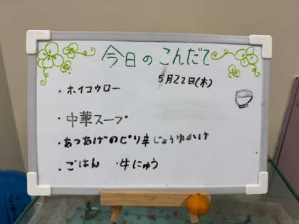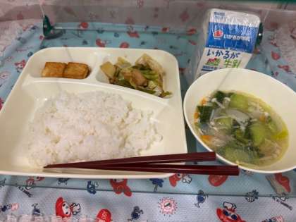 今日の給食は「ホイコウロー・中華スープ・あつあげのピリ辛じょうゆかけ・ごはん・牛乳」です。