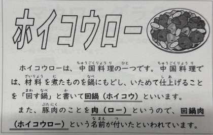 ホイコウローは、四川料理のひとつです。「回鍋(ホイコウ)」とは鍋を回す(あおり炒めや鍋返しをする)ことではなく、一度調理した食材を再び鍋に戻して調理することだそうです。