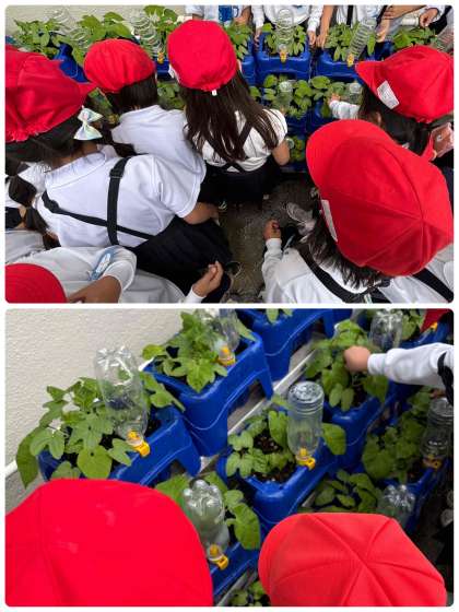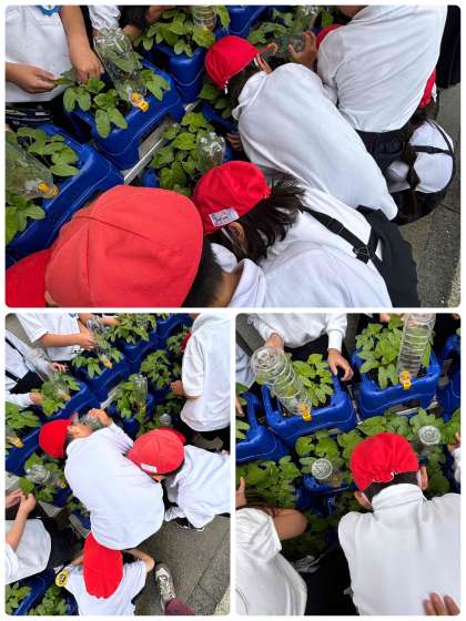 シャカシャカって音がする!何か消毒の匂いがする。双葉と形が違う!シュリケンみたい。などしっかりと見て観察していました。
