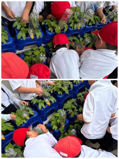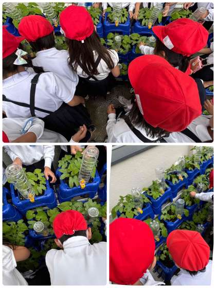 生活科で朝顔に肥料をあげました。早く大きくなあれ、と願いを込めてあげました。
