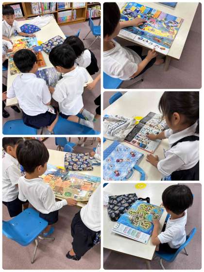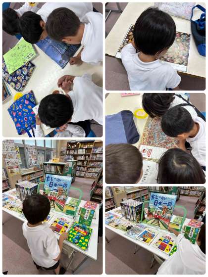 待ちに待った図書の時間です。先生のお話をワクワクと目を輝かせて、聞いていました。沢山の素敵な本に出会って欲しいです。