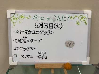今日は子どもたちに人気のグラタンでした。クラスごとに深型のバットに入れて焼き上げています。カレー味であったためスパイスはありましたが、とても好評でした。