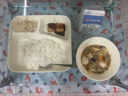 八宝菜、厚揚げの中華味噌だれかけ、もやしの中華和え、ご飯、牛乳です。
