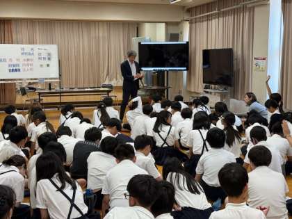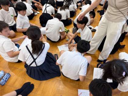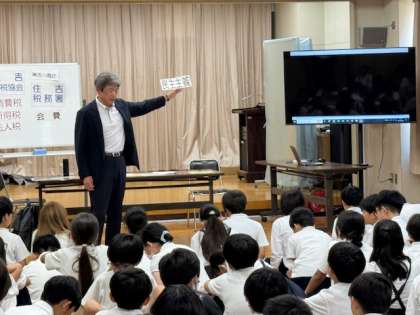 講師の方は「税とは何か」、「税がなぜ必要なのか」を6年生が考えられるように、資料を使って分かりやすく説明していただきました。