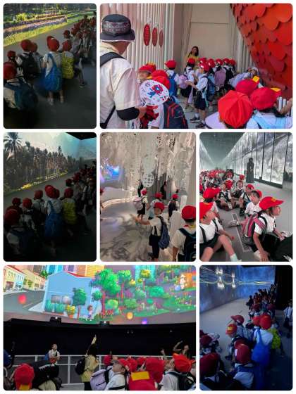 熱中症に気をつけながら、すぐに入れそうなパビリオンを各クラス選んで楽しんでいます。