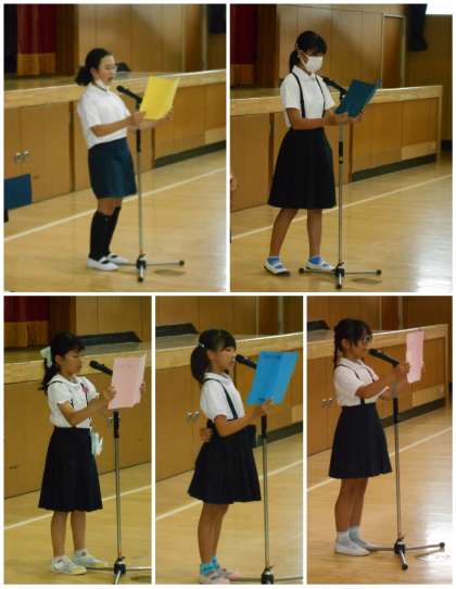 また、1学期からを振り返って児童代表の言葉を5名が発表できました。
