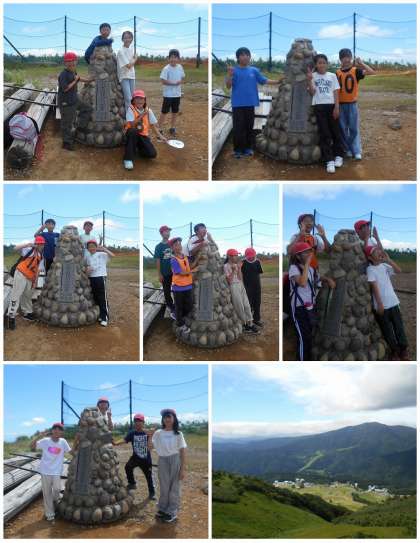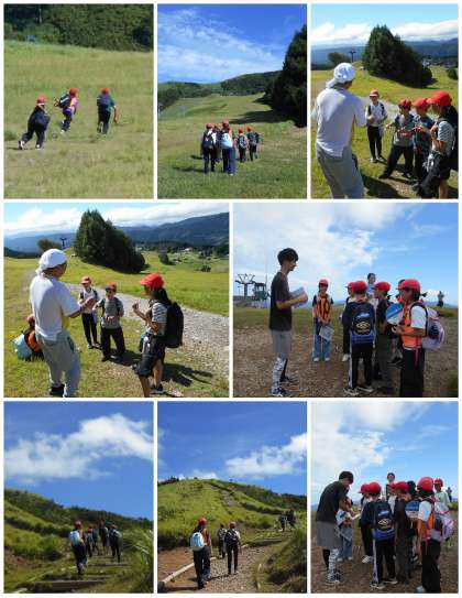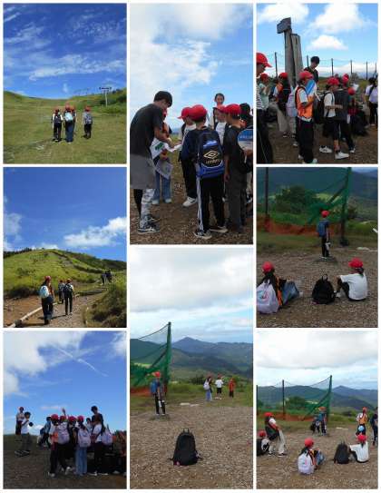 鉢伏山の頂上を目指して、班で声を掛け合って、頑張ります。