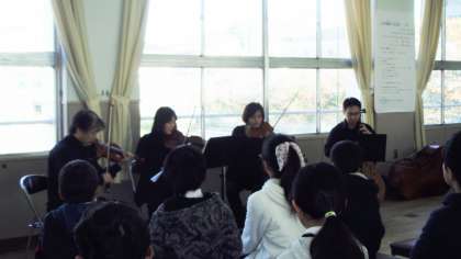 12月7日(水)、5年生は弦楽器(バイオリン、ビオラ、チェロ、コントラバス)の音楽鑑賞をしました。各楽器ごとの音色の違いを聴き比べをした後、「アイネクライネナハトムジーク」「ジュピター」の弦楽四重奏を鑑賞しました。子ども達は、弦楽器の素敵な音色に聴き入っていました。