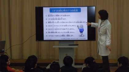 12月19日(月)、6年生は学校薬剤師の先生から薬の正しい使い方について教えていただきました。薬の服用についての注意点や副作用について等、薬についてたくさんの事を学ぶことができました。子ども達は薬についての資料を家に持って帰っておりますので、6年生の保護者の方はぜひご覧ください。