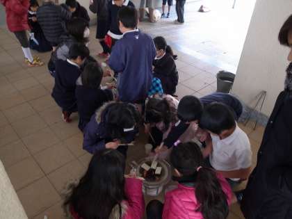 午後から3年生は、昔のくらしについてゲストティーチャーの地域の方に話を聞きました。そのあとに七輪で炭火をおこして餅を焼きました。昔のくらしの大変さと七輪で焼いたお餅のおいしさを味わいました。たくさんの保護者の方にもお手伝いいただき、ありがとうございました。