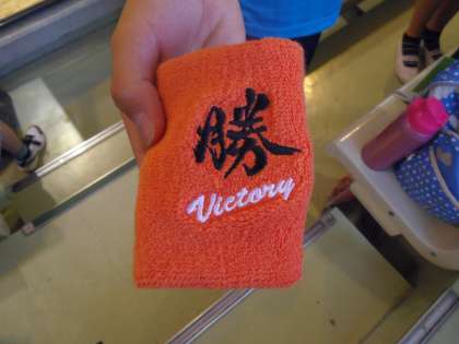 上から大会の横断幕、筆記テストの様子、チームでそろえたリストバンドです。