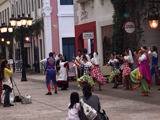 アトラクション巡りは地図を見ながら効率的に回っています。目の前ではスペイン民族舞踊が繰り広げられ、見とれてしまいます。