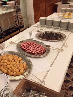 いよいよ夕食です。おいしい料理がずらりと並ぶバイキングです。味をお伝えできないのが残念ですが、写真でご覧ください。