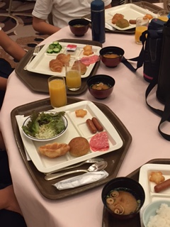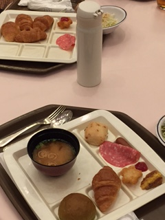 続いて今日の朝食です。昨日と同じ宴会場での貸切のバイキングです。