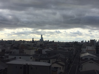 鶴橋駅を発車し、大阪市内に入っています。難波に着き、学校に向かっています。
