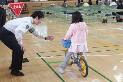 住吉警察の方に来てもらって自転車講習会が開かれました。