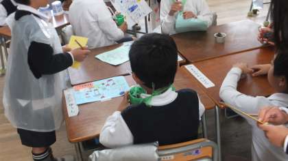 みんなが楽しみに待っていた「東粉浜フェスティバル」が開かれました。1年から6年まで書くクラスでお店を出しました。ペア学年の児童が一緒にお店を回ります。どんぐりカフェは、せいかつかでどんぐり拾いに行った時のものを使ってお店の商品にしていました。図工で作ったコリントゲーを使ったり、コイン落とし。廃材で作ったラケットを使っての卓球などなどたくさんのお店がありました。回り切れなかった子どもたちもいました。そして今年は、英語学習で来ていただいているマイケル先生もお店を出してくださいました「えいごであそぼう」というお店です。英語で挨拶をし、英語でジャンケンをしました。どのお店もみんな楽しくてあっという間に時間が過ぎて行ってしまいました。