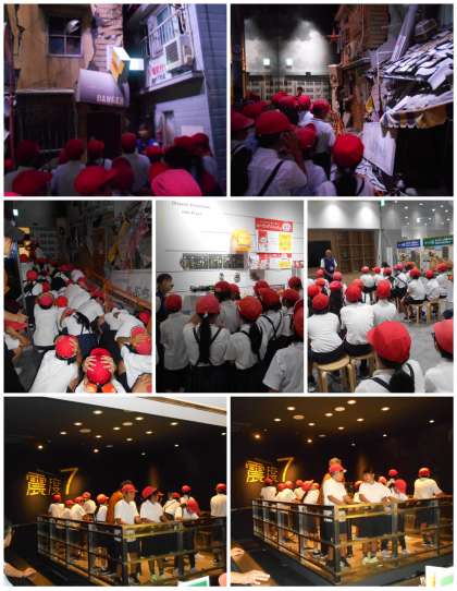 阪神淡路大震災、東日本大震災など、万一災害が起きた時の命を守るための学習を行いました。震度7の模擬体験もしました。