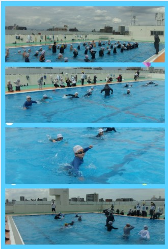 服を着て入水した時、いつもと違う思うように動けない大変さを体験しました。