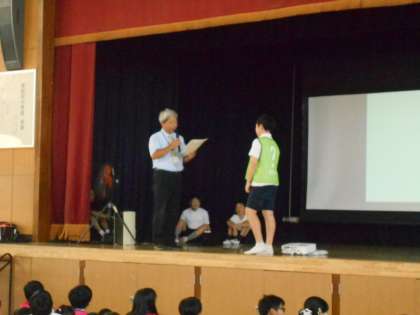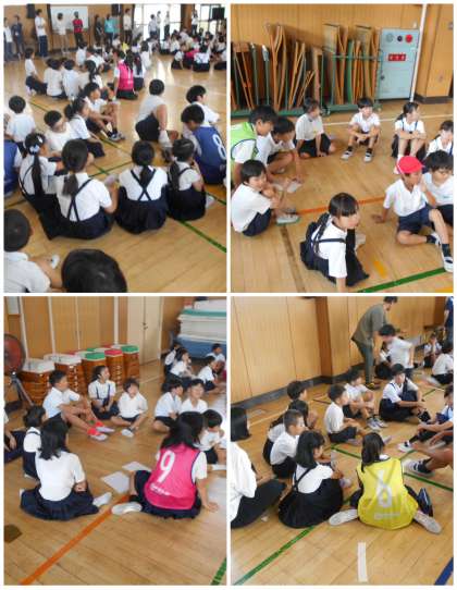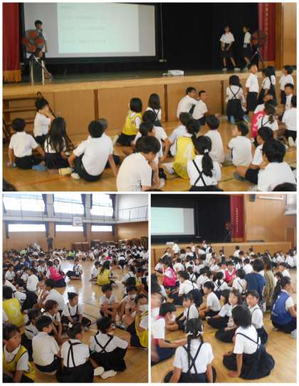 今日の児童集会は、先生あてクイズでした。3つのヒントが出され、それがどの先生のことかをあてるクイズでした。いろいろな学年にかかわる先生が出てきたので、みんな一生懸命に考えて盛り上がっていました。