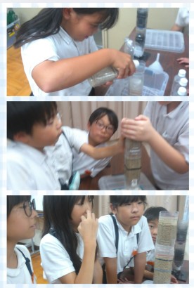 水の汚れや臭いを除去する仕組みを教えてもらったり、水の飲み比べをしたりするなどの活動を通して、1学期に学習した水の学習のことの理解を深めました。