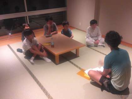 就寝準備を手際よく済ませ、最後はきょう一日の振り返りの会議です。