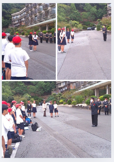 親切にしてくださった宿舎の皆さんが、最後は赤いハンカチを振って見送っていただけました。