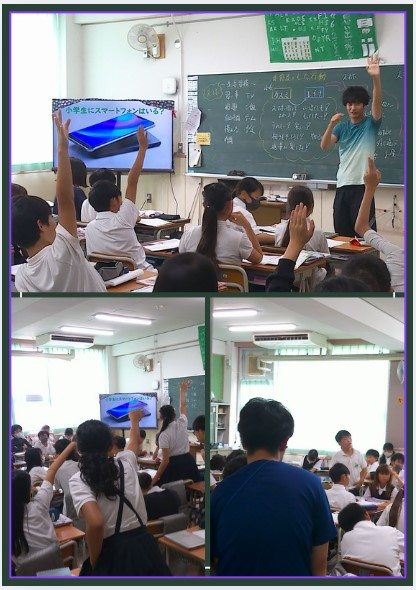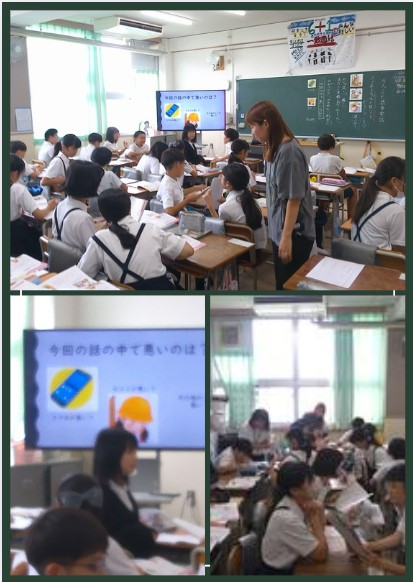携帯電話の使い方がよくなかった主人公の行動について分析し、正しい使い方を検討する授業でした。