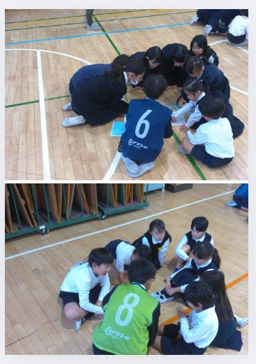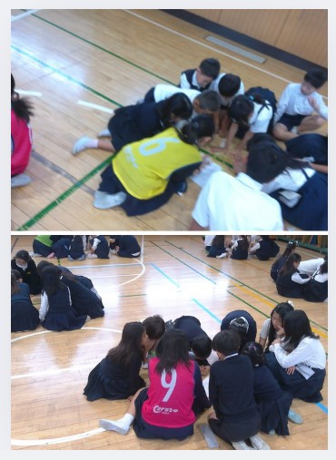 本日の集会は、講堂で、東粉浜フェスティバルのお店を回る順番を相談しました。