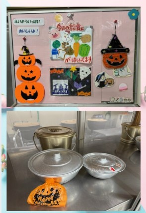 今日は給食室でハロウィンを感じることができました。Trick or Treat!!
