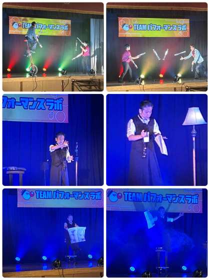 TEAMパフォーマンスラボのミラクルイリュージョンサーカスという題名通り、ハラハラドキドキするジャグリング、とても不思議な目を疑うイリュージョン、子どもたちの驚きや歓声も大きく、大変盛り上がった、あっという間の1時間でした。