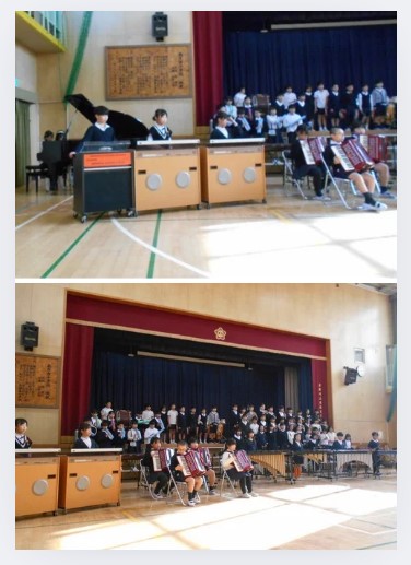 清水丘小学校、山之内小学校、南住吉小学校との4校での交歓音楽会となりました。