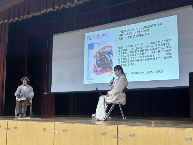 総合打楽器集団ナムハンの皆さんによる演奏や柏木ドリス優真さんによる講演、NHKで放送された番組に関わってのディスカッション、雑誌建築ジャーナルに紹介された住吉のまちづくりについての講演が行われました。