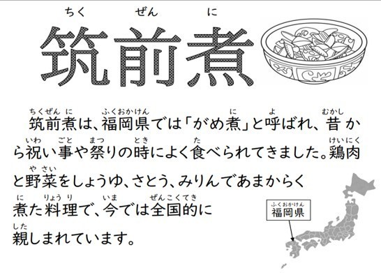 筑前煮は鶏肉と野菜をしょうゆ、砂糖、みりんで甘辛く似た料理でご飯がよくすすみました。