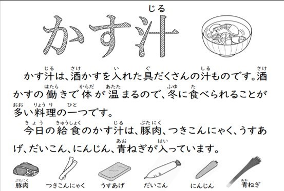 今日は寒い日に身体があたたまる「かす汁」が登場でした。