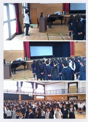 まずは校長先生から、冬休みのくらしについて、規則正しい生活で健康に過ごし、家族の一員として、勉強に生活に頑張りましょう、そして新学期に元気に会いましょう、とお話がありました。