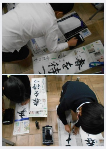心を落ち着かせ、3学期を清らかな気持ちで迎えるために、書き初めをしました。今までに学習した「書写のかぎ」を生かし、静かに筆を持ち、文字に集中して書きました。