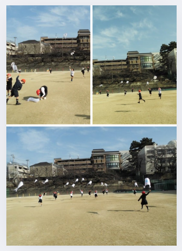 先日作成したタコを運動場であげました。思うようにコントロールするのが難しいようでしたが、空高くあがるタコを嬉しそうに走りながら見ていました。