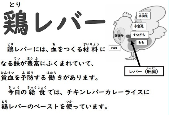 鶏レバーには、血をつくる材料になる鉄が豊富にふくまれていて、貧血を予防する働きがあります。