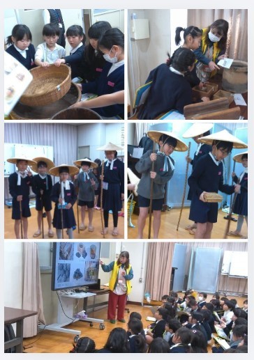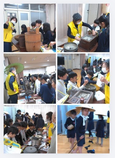 社会科の学習として「住吉歴史案内人」の皆様を特別講師としてお招きし、昔の道具について学びました。