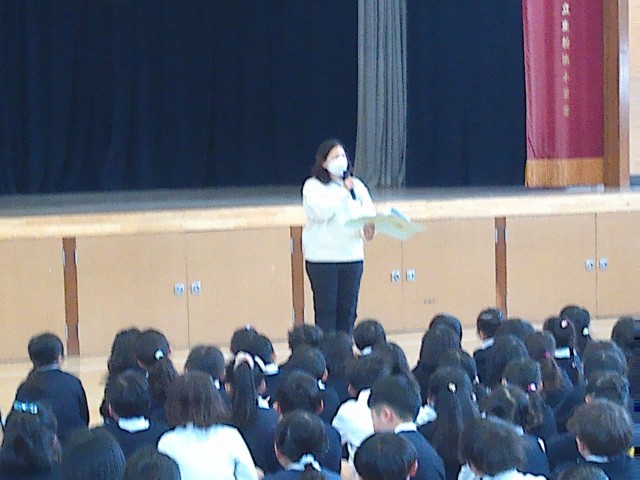 校長先生からは、先週末に始まった冬季オリンピックの話から、選手の活躍を見て、夢や憧れを持つ機会になれば、ぜひ自分もそんなことができる健康な体を鍛えましょう、という話がありました。ウィンタースポーツに取り組める強靭で健康な体にするために、早寝早起き朝ごはんという規則正しい生活をすること、なわとびでもかけあしでもいいので、毎日外で体を動かし続けることなど、できることをやり続けましょう。