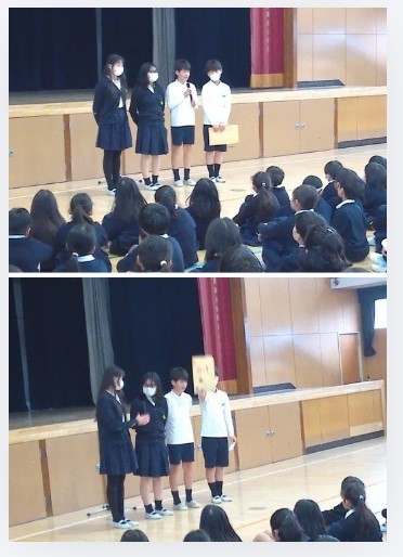 講堂で行った児童朝会で、校長先生からはこの前のいじめアンケートを受けて、いじめに関する話がありました。