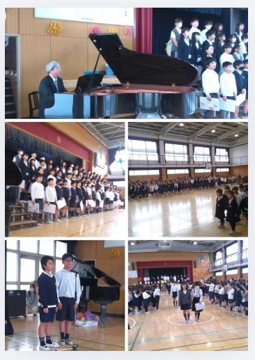 最後に校長先生がピアノ伴奏を弾き、全校児童で「ありがとうの花」を大合唱。