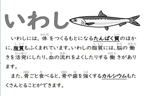 いわしには、体をつくるもとになるたんぱく質のほかに、脂質も含まれています。
