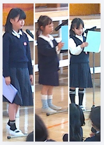 続いて、1年生と4年生がこの1年間の思い出の振り返りの発表をしました。とても上手に発表することができていました。