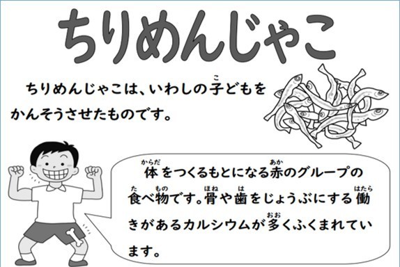 「じゃこピーマン」は、ちりめんじゃことピーマンを炒めた献立です。子どもたちが食べやすいように、砂糖の甘さが少し感じられるしょうゆ味になっています。