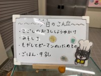 今日の給食は、「鶏肉とじゃがいもの煮もの、あつあげのしょうゆだれかけ、紅さけそぼろ、ごはん、牛乳」です。