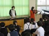 2年生の音楽鑑賞会を行いました打楽器奏者の前川さんとバイオリん奏者の袴田さんに...